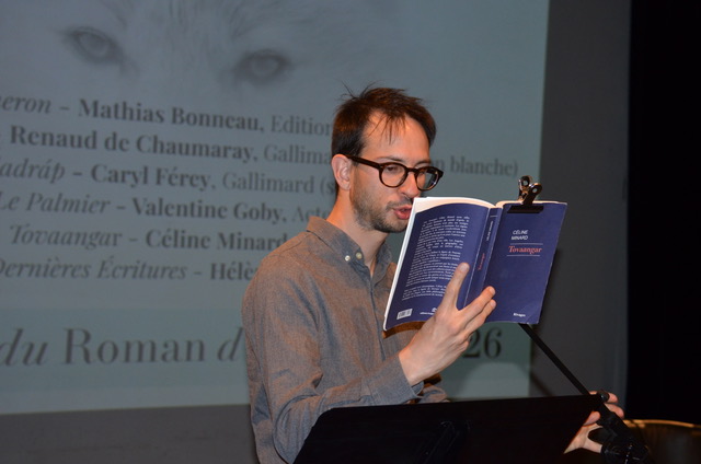 Les étudiants membres du jury ont lu des extraits de six romans sélectionnés — Bûcheron (Seuil), Quitter la vallée (Gallimard, La Blanche), Grindadráp (Gallimard, Série noire), Le Palmier (Actes Sud), Tovaangar (Rivages), Les dernières écritures (P.O.L) — et dialogué avec les trois romanciers présents : Mathias Bonneau, Caryl Ferey et Valentine Goby.